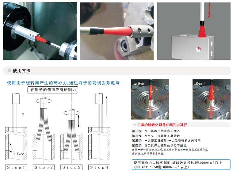 交叉孔去毛刺研磨刷應用案例及使用說明: