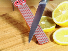 使用DMT?鉆石磨刀石,可有效的快速的磨削廚房一切刀具刃具、菜刀、水果刀均可使用。生手熟手均可快速完成。