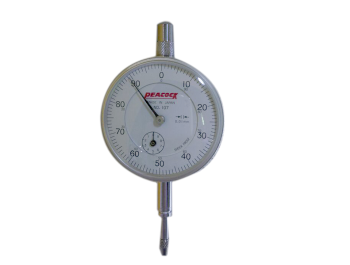 日本孔雀百分表107系列是比較常用的指針式百分表,是標(biāo)準(zhǔn)型的量表,ZUI小讀值0.01mm,測(cè)量范圍10mm。