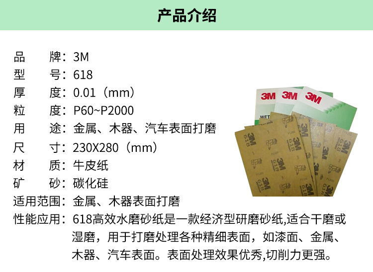 618高效水磨砂紙是一款經(jīng)濟(jì)型研磨砂紙, 適合干磨或濕磨,用于打磨處理各種精細(xì)表面,如漆面。表面處理效果優(yōu)秀, 切削力更強(qiáng)。