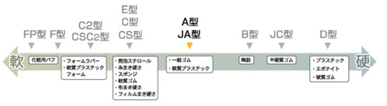 上圖所示為橡膠硬度計(jì)的種類(lèi)圖, 根據(jù)試樣的種類(lèi)設(shè)計(jì)不同的硬度計(jì). 符合 JIS K 6253標(biāo)準(zhǔn)的A型橡膠硬度計(jì)是最普遍最常用的一款.但是通常情況下,測(cè)量值在10點(diǎn)~90點(diǎn)之間,使用A型硬度計(jì),A90點(diǎn)以上時(shí)使用D型硬度計(jì)(硬質(zhì)材料使用),A20點(diǎn)以下時(shí)使用C型或E型硬度計(jì)(軟質(zhì)材料使用)。就是說(shuō),根據(jù)試料的種類(lèi)選擇合適的機(jī)型最重要。
