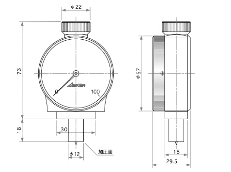 加壓面與試料間接觸的面積需在44*18mm尺寸范圍以上的情況下才能正確測量,試料的測量部位狹小或者對凹陷部位進行檢測的情況下,則使用長腳型硬度計(BL型)
