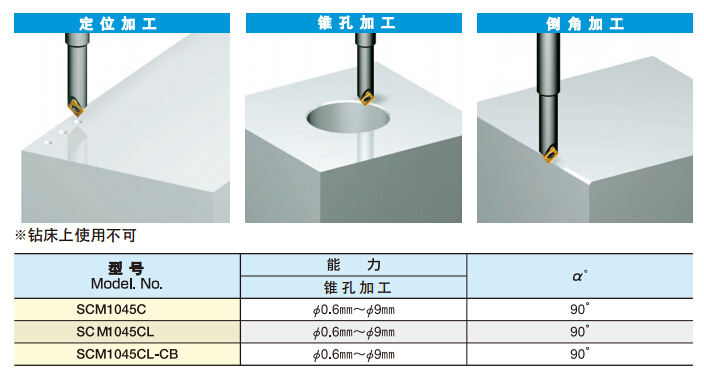 中心鉆兼倒角刀,節(jié)省了工具更換裝置的工序,