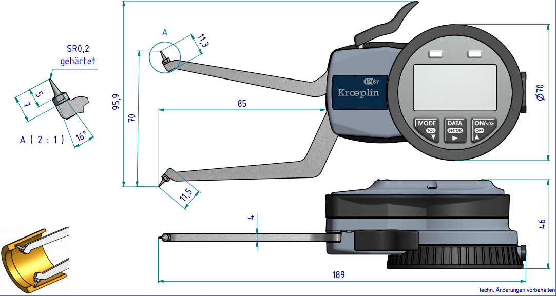 多個數(shù)顯設(shè)定功能: 絕對和相對測量, 上下限超差顯示等。