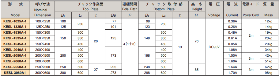 KESL-1025A日本強(qiáng)力電磁吸盤