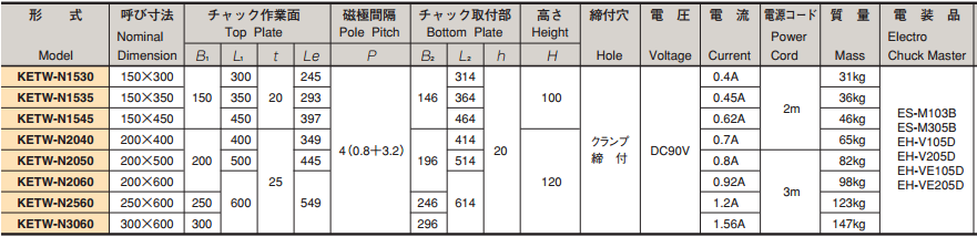 KETW-N1530日本強(qiáng)力電磁吸盤(pán)