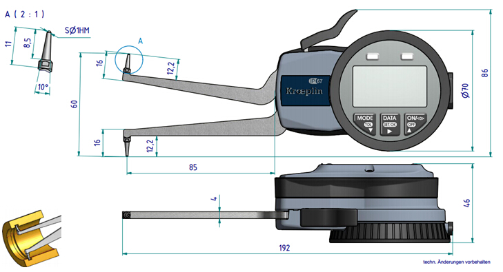多個(gè)數(shù)顯設(shè)定功能: 絕對和相對測量, 上下限超差顯示等。