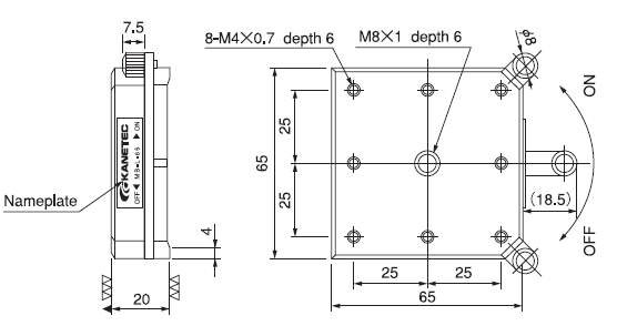 MB-L-65 | 200N(20kgf) | 65 | 20 | 4 | M*P1.25 | 25 | 8 | M4*P0.7 | 0.6KG |