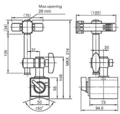 強(qiáng)大吸力的磁性底座,可開/關(guān),便于安裝在機(jī)床上。