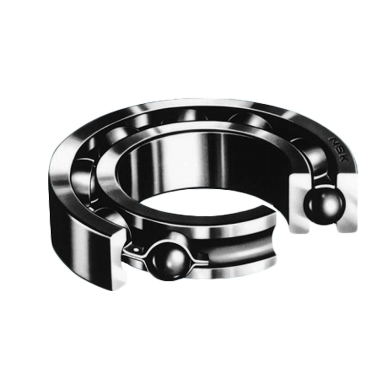 (1)滿球軸承,由于在內圈及外圈上設計了填球口,可比深溝球軸承多裝球。因為有填球口,所以不適于軸向載荷大的用途。另外使用軸承時,盡可能將外圈的填球口位置只作為非載荷圈。保持架為沖壓保持架。
