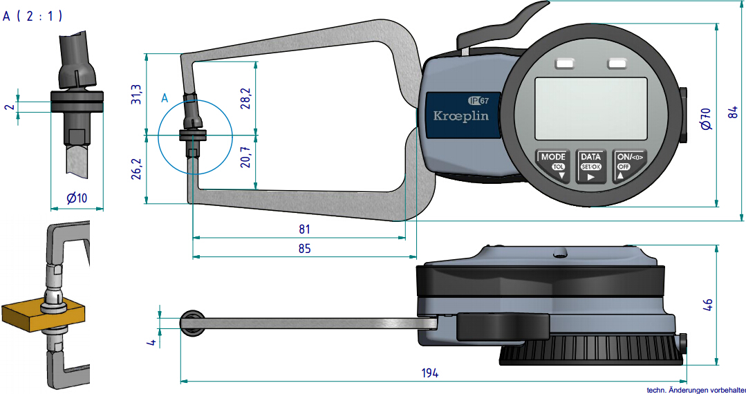 多個(gè)數(shù)顯設(shè)定功能: 絕對(duì)和相對(duì)測(cè)量, 上下限超差顯示等