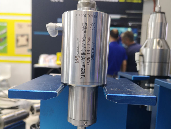 Nakanishi新款主軸NR33-6000ATC-ESD,通過與軸芯連接的碳刷把靜電從刀具轉(zhuǎn)移到外殼,從而消除靜電。