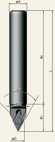 刀柄直徑(φ16)和刀尖直徑(φ12)的小口徑鉆, 更適用于狹窄部位60?的加工。