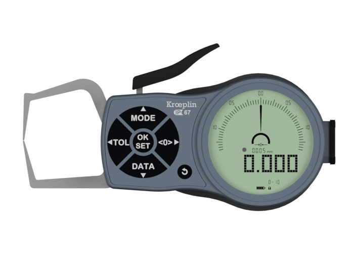 德國kroeplin數顯外卡規(guī)K110S,測量范圍:0-10 mm,最高探頭臂長L:35毫米,防護等級:IP65。