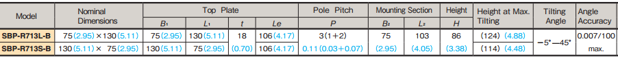 兩種類型可供選擇,冗長的類型(模型SBP-R713S)和寬類型(模型SBP-R713L),傾斜角度相同。