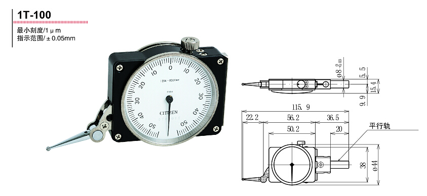 西鐵城CITIZEN杠桿式指針測(cè)微器1T-100