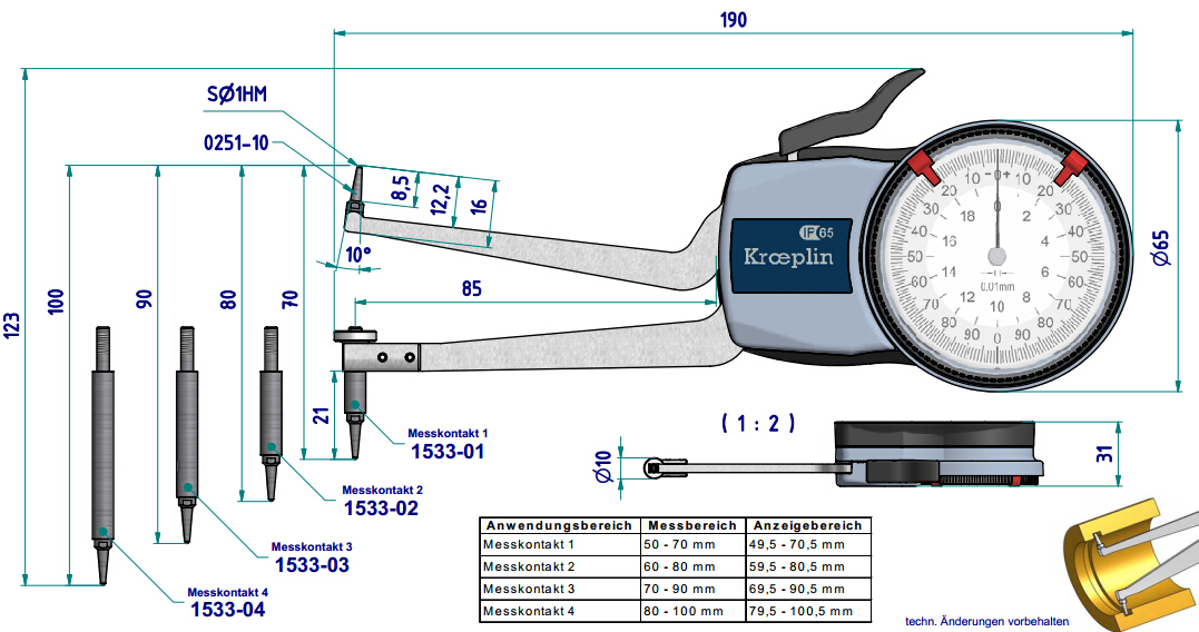 德國KROEPLIN指針式內(nèi)徑卡規(guī)H2M50